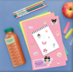 As crianças podem até ajudar a etiquetar o próprio material, vira uma diversão! Além das etiquetas escolares, o kit vem com adesivos sortidos e divertidos para a criançada colar no caderno, na agenda, no estojo e brincar à vontade.