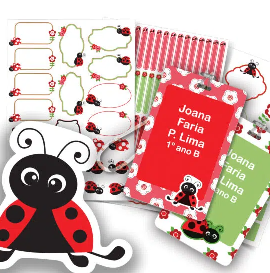 Para a personalização das etiquetas com nome e série da criança, solicitamos que as etiquetas grandes tenham no máximo 45 caracteres, etiquetas médias 25 caracteres e etiquetas para lápis com 25 caracteres.