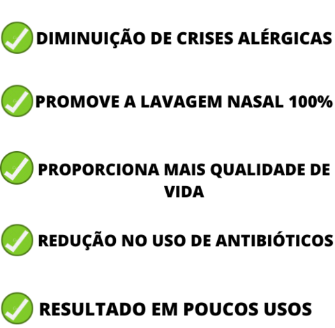 O Nasal Pro é fácil de limpar, não vasa e é ideal para todas as pessoas e idades. Afinal, ninguém merece sofrer com rinite ou sinusite.