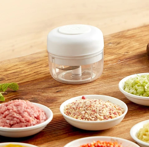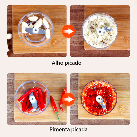 Com lâminas de aço inoxidável reforçadas para o preparo de alimentos como alho, gengibre, pimentão, vegetais, frutas, temperos, carnes e até mesmo papinha para bebês. Para utiliza-lo é simples e fácil, basta apertar o botão na parte superior e pronto.