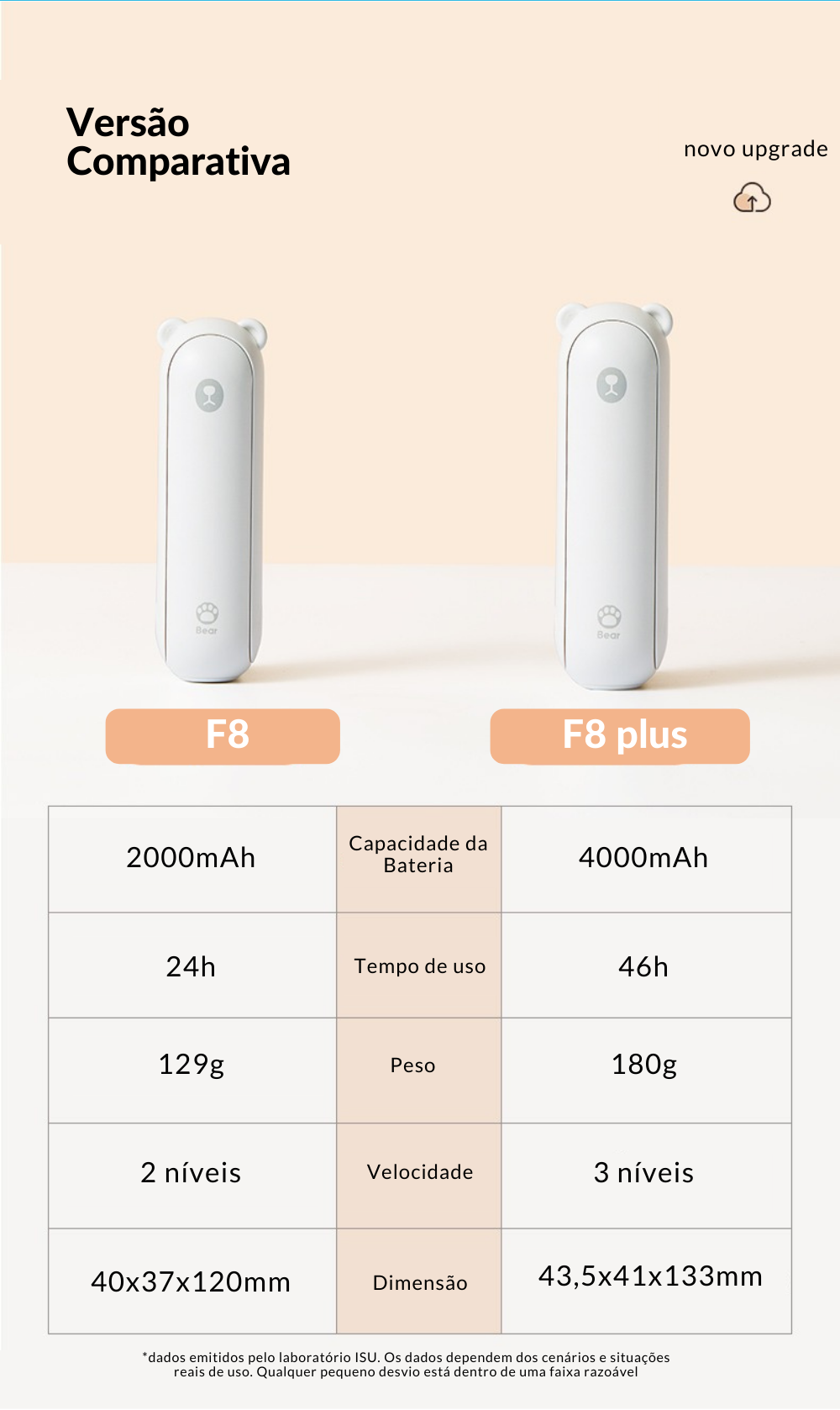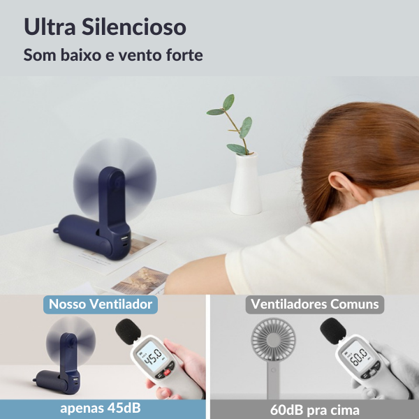 Super leve e pequeno para levar para qualquer lugar em sua bolsa, mochila e até no bolso da calça se quiser, ele possuí uma potencia tão poderosa quanto um ventilador.